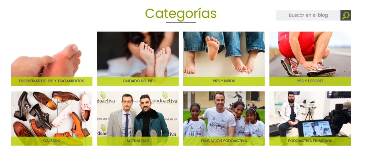 - Pies y niños. Categoría centrada en la podología infantil y todo lo relacionado con los más pequeños y su pisada.