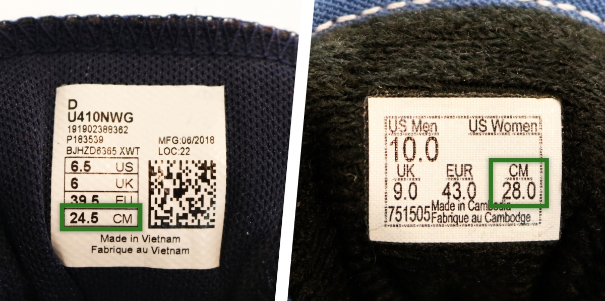Muchos fabricantes apuestan cada vez más, sobre todo en zapatillas deportivas, por colocar en la etiqueta del calzado la medida en centímetros, ya que es más precisa y global.