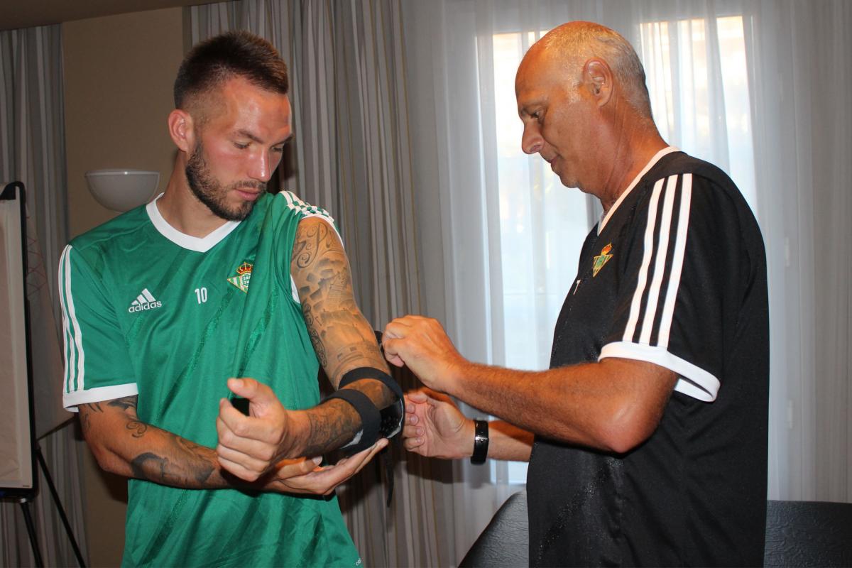 Tomás Calero, jefe de los servicios médicos del Real Betis Balompié, detallaba las ventajas que tiene esta férula específica que Didier Digard llevará durante los próximos diez días. “Lo que más nos ha gustado es el poco peso que tiene y la capacidad para autofijarse al contorno de la articulación. Estamos convencidos de que con la colocación de esta férula la recuperación de la fractura irá por el camino adecuado. Tenemos la seguridad y la confianza de que respeta las angulaciones justas para que la fractura consolide en un tiempo récord”, afirmaba.