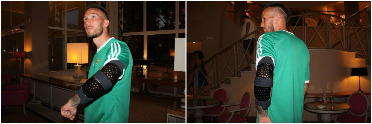 Digard, jugador del Real Betis, llevará los próximos diez días una férula Younext en el codo