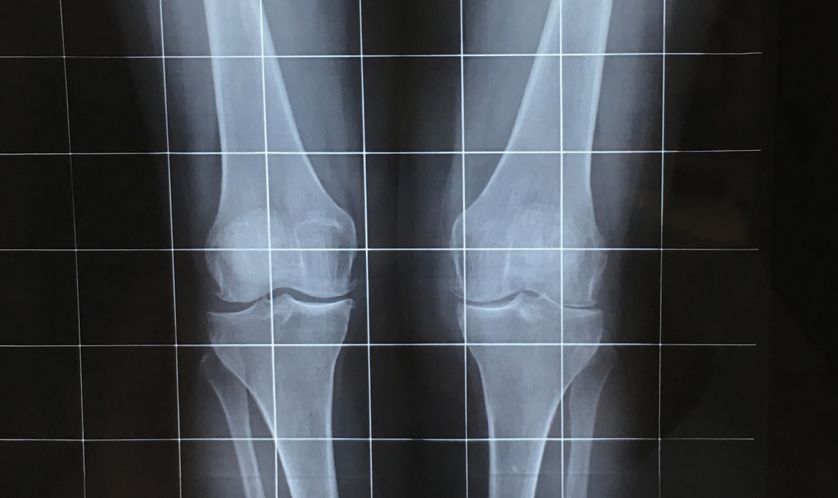 En la radiografía se puede apreciar como la rodilla derecha tiene menos espacio articular en la zona externa, debido a la degeneración tanto del menisco como del cartílago.