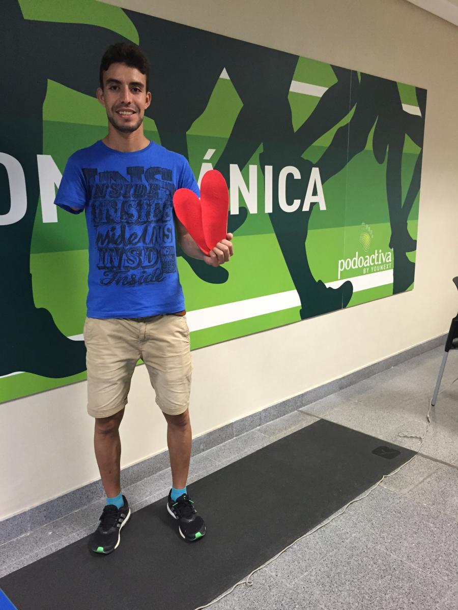 En nuestra Unidad de Biomecánica se le realizó una exploración en camilla, análisis estático y dinámico con plataforma de presiones, análisis de la carrera y el 3D scan sport podoactiva para poder realizarle unas plantillas personalizadas que le ayuden a solucionar su fascitis plantar. La técnica podoactiva está especialmente indicada en el tratamiento de la fascitis plantar ya que permite calcular con mucha precisión la elasticidad necesaria y la mejor geometría de la plantilla para solucinar el problema, contando en la actualidad con un porcentaje de éxito superior al 90% en esta patología.