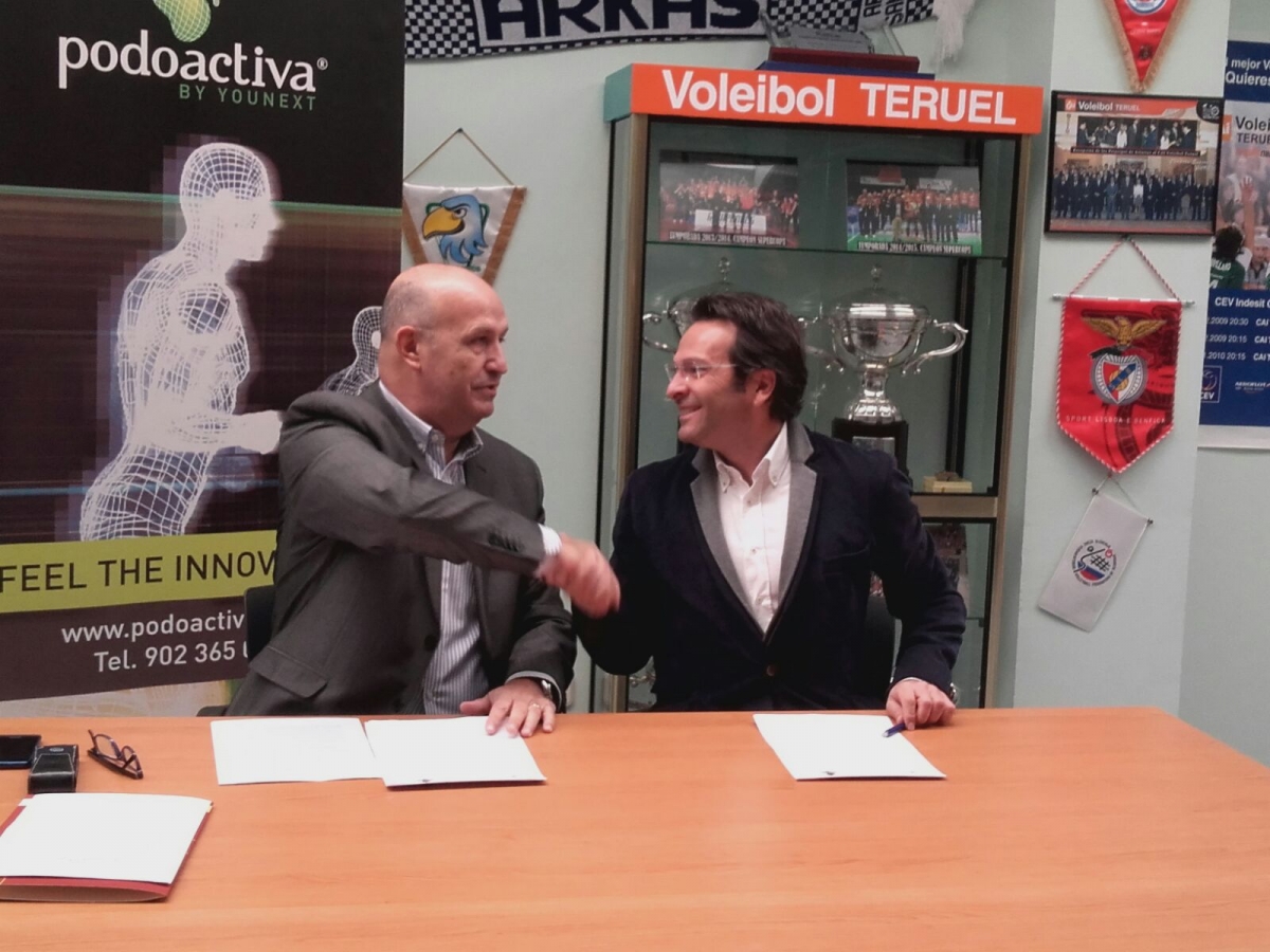 El acto de firma ha tenido lugar este miércoles en el Pabellón Los Planos de Teruel por parte del presidente del Club Voleibol Teruel, Carlos Ranera, y por el responsable de expansión de Podoactiva, Alberto Fernández, en un acto en el que se han realizado demos con los jugadores del cuadro turolense de los estudios biomecánicos de Podoactiva.