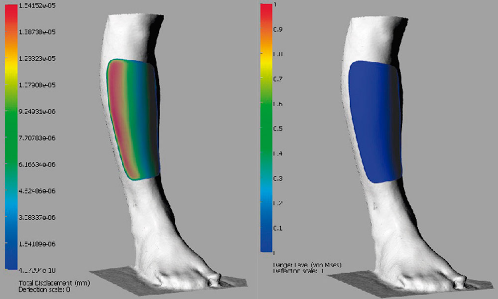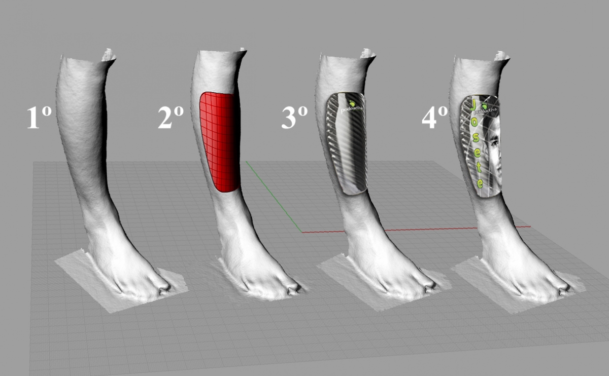 3. Tras cruzar todos esos datos se obtiene como resultado una espinillera cuya adaptación a la pierna del jugador es superior al 90% en comparación con diseñar una protección mediante un escaneo 3D de la pierna.