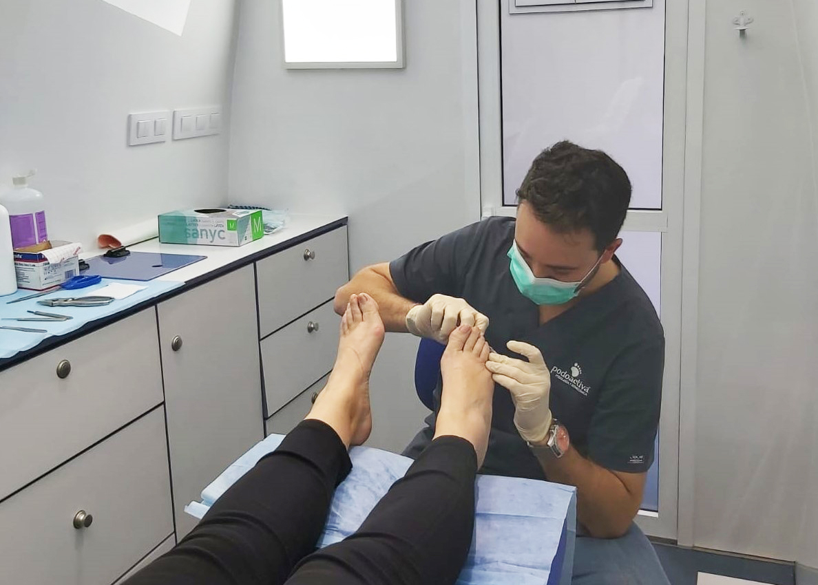 La Unidad Móvil permite que los pacientes de los pueblos reciban diferentes servicios como el de quiropodia que es el más demandado. Este incluye corte y fresado de uñas terapeútico, deslaminación de hiperqueratosis (durezas), tratamiento de callosidades y helomas, fresado de talones, etc. Así pues, con este tratamiento se puede evitar la aparición de uñas incarnadas, hongos en las uñas, papilomas, helomas, dolor causado por la aparición de callosidades, etc.