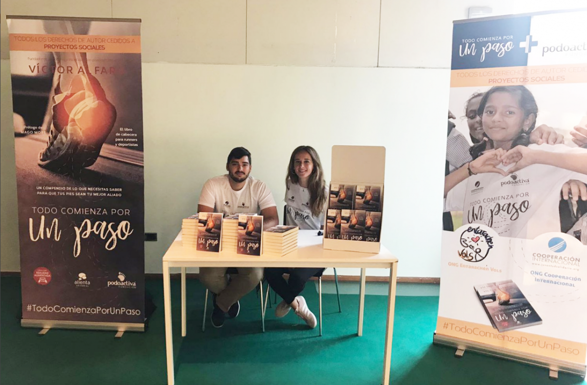 Nuestro libro solidario “Todo comienza por un paso” escrito por Víctor Alfaro también estuvo presente en el Congreso en el stand nº45. Quisimos trasladar hasta Santiago nuestro lado más social, ya que todos los beneficios generados por los derechos de autor se destinan a proyectos sociales de la Fundación Podoactiva.