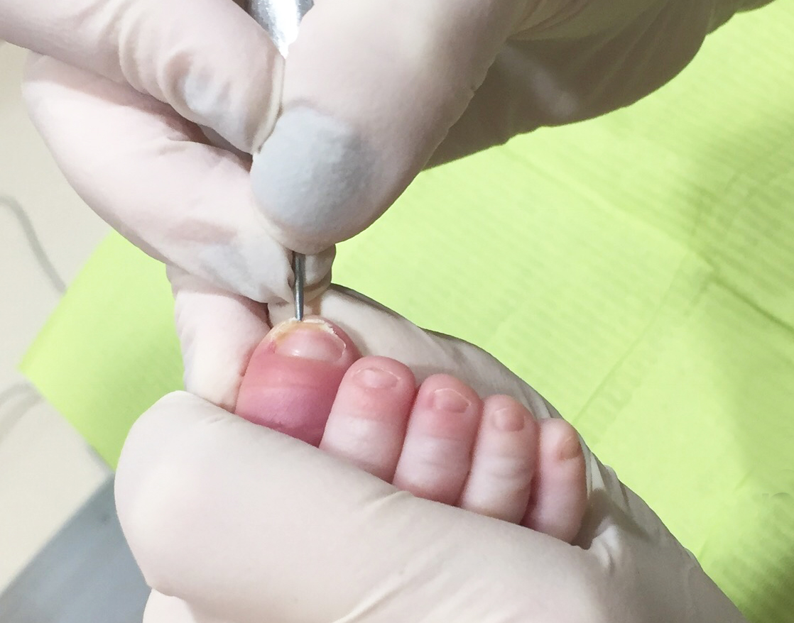 Nuestros especialistas vieron al bebé en revisión dos días a la semana para manipular con la gubia la zona. El objetivo es conseguir, poco a poco, desenganchar la uña y elevar su posición para evitar que siga creciendo hacia abajo y se clave más.