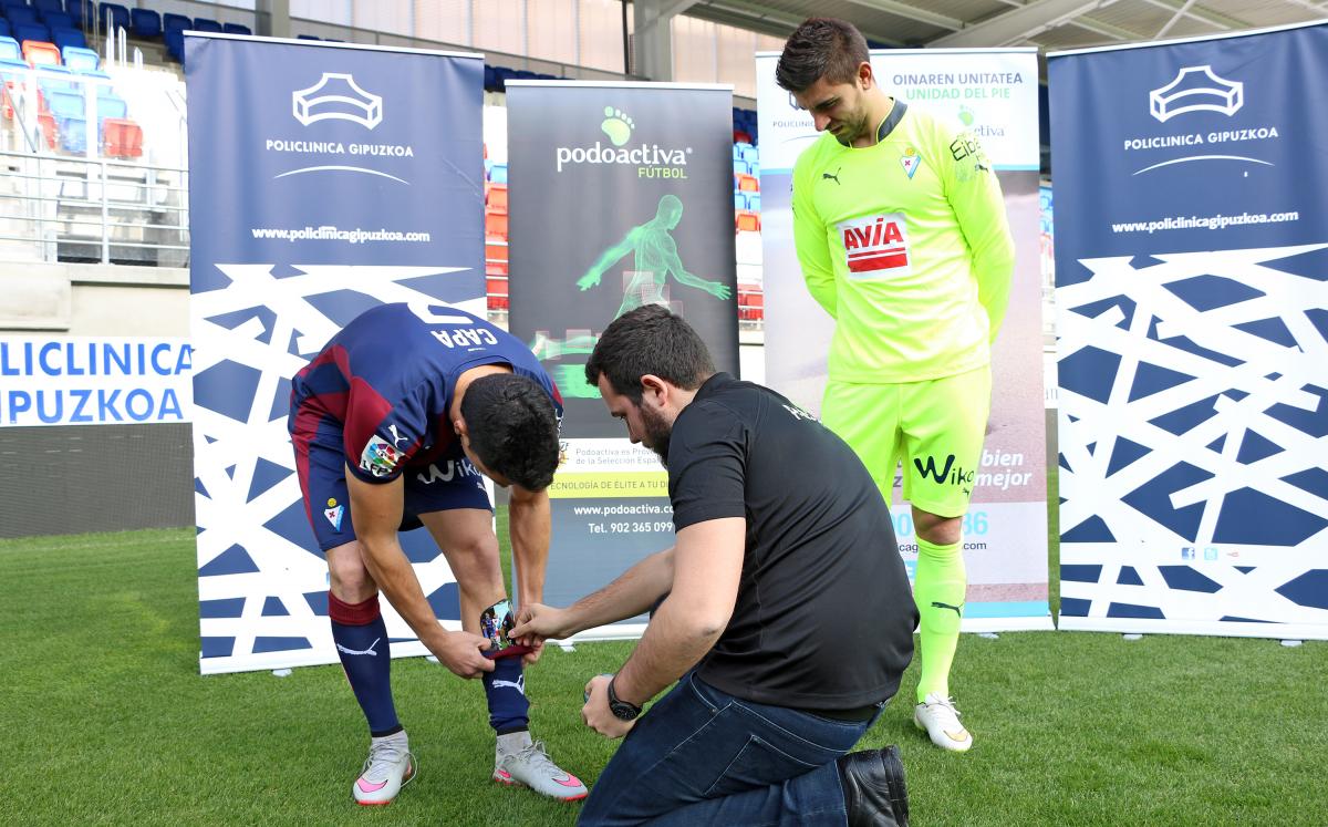 La S.D. Eibar el primer equipo del País Vasco en tener espinilleras personalizadas Podoactiva. Foto: Policlinica Gipuzkoa