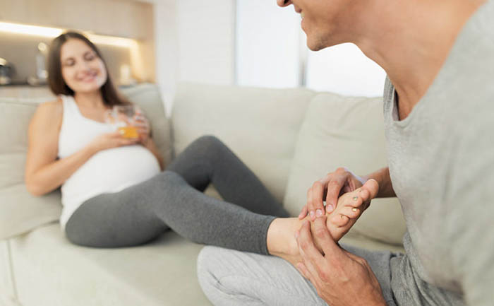 Por ello, a finales del segundo trimestre, la mujer embarazada empieza a tener edemas a nivel de la región del pie y tobillo. Cabe destacar que, tras el parto, los pies y tobillos pueden seguir hinchados. Esto es algo normal y, poco a poco, irá desapareciendo.