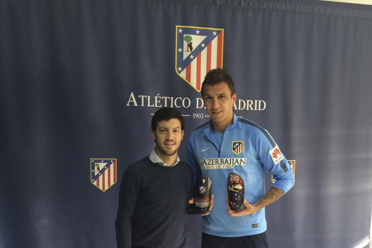 12 Nov 2014El futbolista del Atlético de Madrid, Mario Mandzukic, ya tiene sus espinilleras personalizadas Podoactiva Élite Protection.