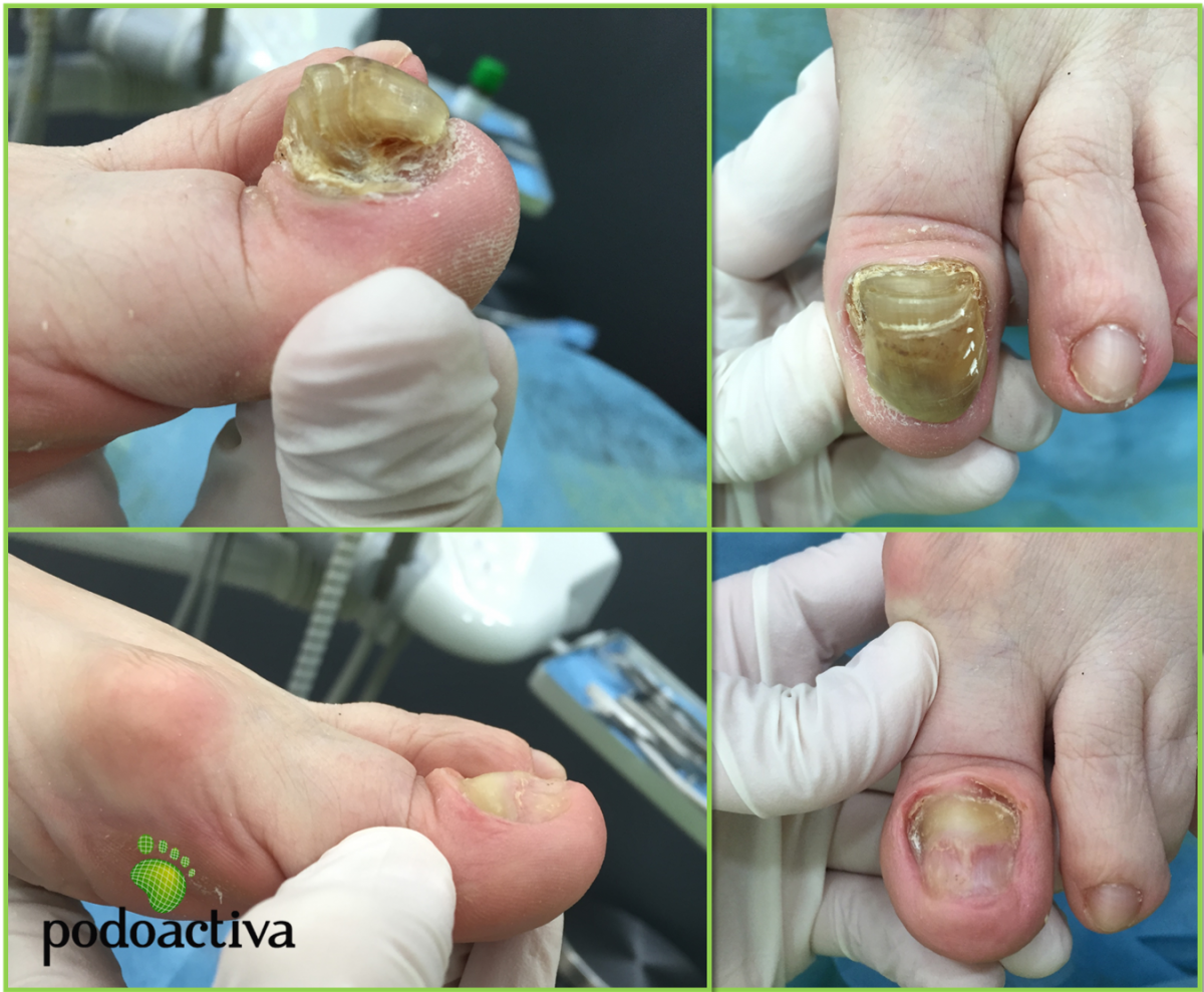 La onicogrifosis es el aumento exagerado del grosor de las uñas. Hasta las consultas de Podoactiva llega una paciente que trabaja en el sector metalúrgico. Hace 5 años sufrió un accidente laboral, una plancha de hierro le aplastó su calzado de seguridad y el golpe le provocó un fuerte hematoma en el primer dedo del pie izquierdo.