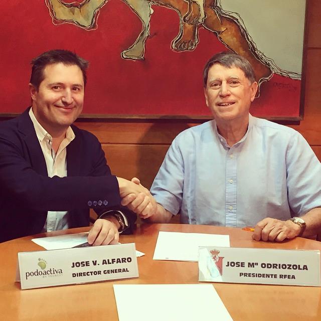 Por tercer año consecutivo renovamos nuestro acuerdo de colaboración con la Real Federación Española de Atletismo (RFEA) como “Proveedor Oficial de Biomecánica y plantillas personalizadas”. Nuestro director general, José Víctor Alfaro, y el presidente de la RFEA, José María Odriozola, han firmado hoy el acuerdo en los locales de la federación.