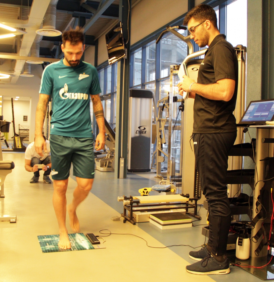 Juan Candau, fisioterapeuta español del Zenit de San Petersburgo (y anteriormente del Sevilla y el CSKA de Moscú) y el podólogo de Podoactiva José Antonio Rodríguez de la unidad del Hospital NISA Aljarafe de Sevilla han realizado, en la ciudad deportiva del equipo en San Petersburgo, un análisis exhaustivo de la biomecánica y podología de los jugadores del primer equipo para proveerles de tratamientos con plantillas personalizadas Podoactiva.