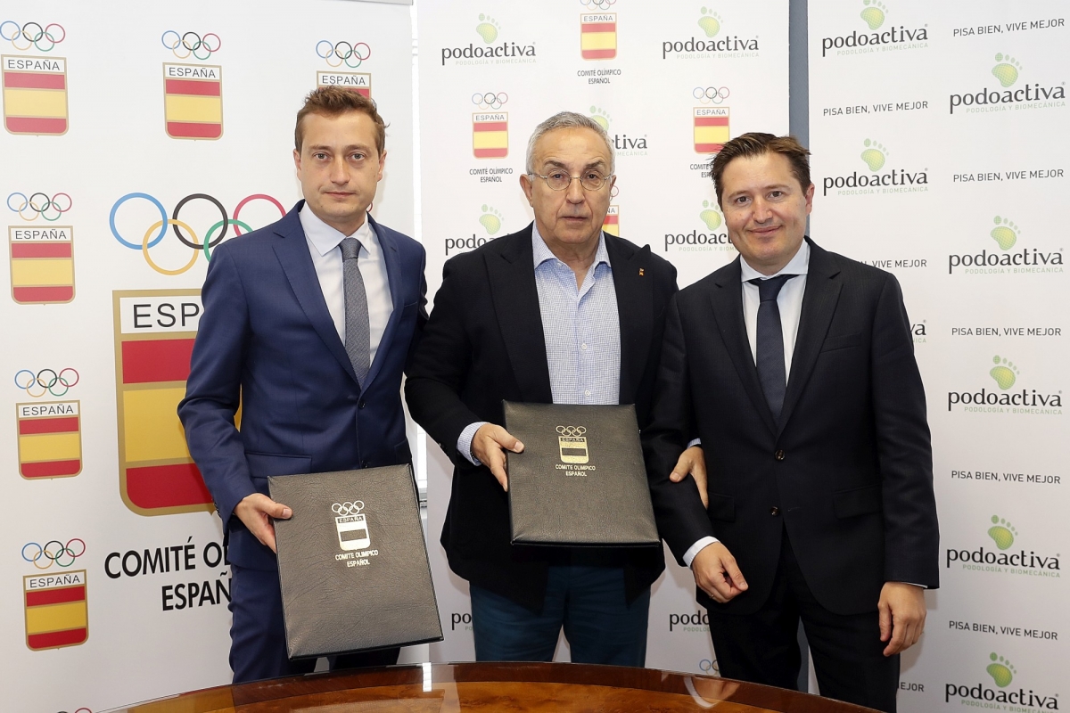 Este mediodía se ha celebrado el acto de firma del acuerdo en la sede del Comité Olímpico Español con la presencia del presidente del Comité Olímpico Español, Alejandro Blanco; del director general de Podoactiva, Víctor Alfaro; y del director técnico de la empresa de podología, Javier Alfaro.