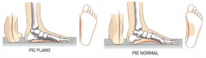 Un pie plano tiene un descenso del arco plantar y se da cuando se tiene menos arco del habitual, es decir, el eje del pie se inclina hacia dentro. Además de detectar el pie plano porque hay menos arco de lo normal, pueden aparecer dolores en la musculatura de la zona interna de la pierna y en el dorso al hundirse el pie. Lo más importante en un pie plano es su apellido. Puede ser flexible, semi flexible o rígido. Para saber de cuál se trata se realizan diferentes test biomecánicos: