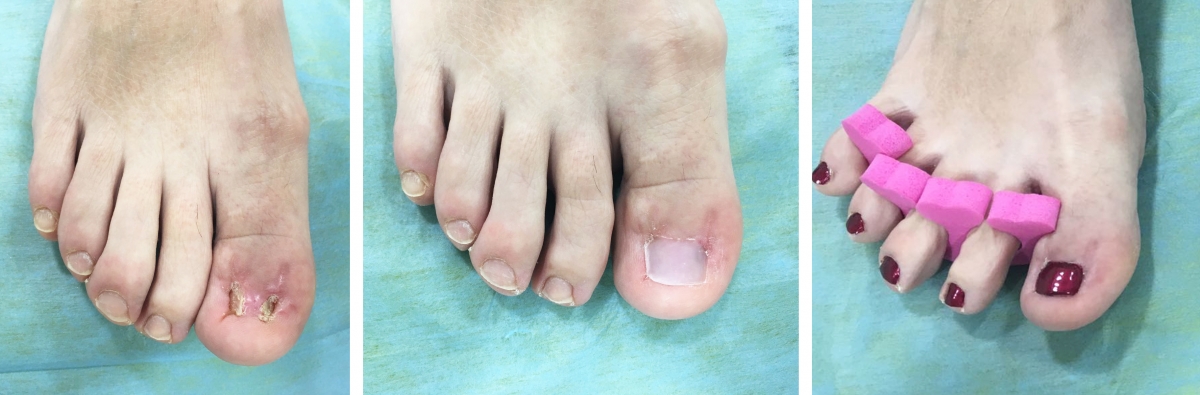 La reconstrucción ungueal es una técnica podológica que se emplea para proteger la uña del pie y simular su presencia durante el tratamiento de recuperación.