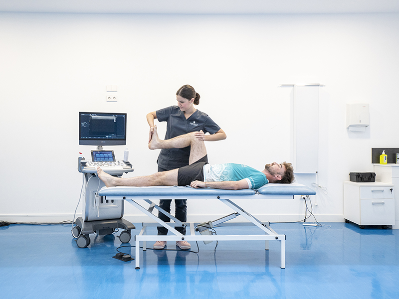 En primer lugar, el paciente se encuentra en decúbito supino, es decir, tumbado boca arriba. En ella se valoran posibles dismetrías (si tiene una pierna más larga que otra), si la dismetría es postural o real, las rotaciones de cadera, así como los balances articulares y musculares de toda la extremidad inferior.
